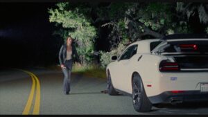 Warwick is likewise a shining example of what we initially might interpret as the prototypical “helpless female” in a film like this, but instead offers some nicely delicious depth and more acute awareness of what her situation could ACTUALLY be through her role as Joanna. IN a more “standard” circumstance involving her car being broken down on a lonely nighttime road, her encounter with Bill holds the expected hesitations about who he is and whether she can trust him. Choosing to do the latter, it doesn’t take long for her to realize he may not be the “good samaritan” he tries to come across as, yet she herself ALSO might not be what SHE appears either, levels of what seems like gullibility not quite accurate. How it unfolds is what gives this film some legitimate, if still uncomplicated, tension, and Warwick brings both a femme fatale AND scream queen vibe to bear perfectly.
