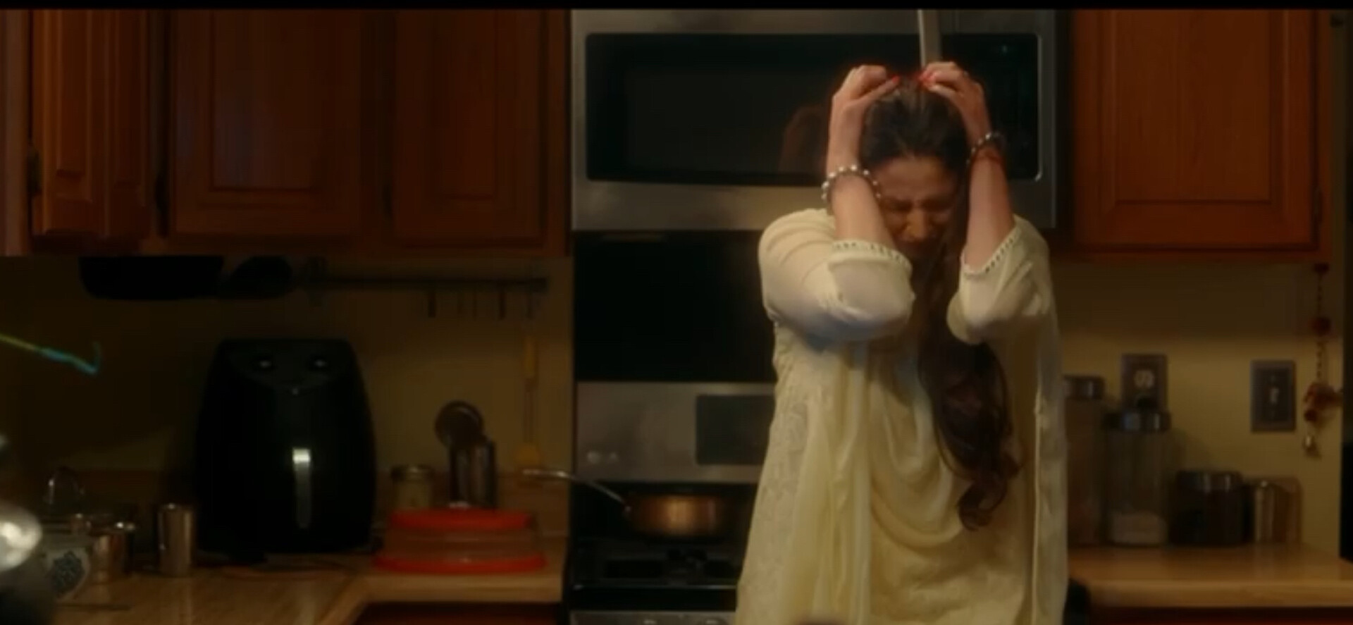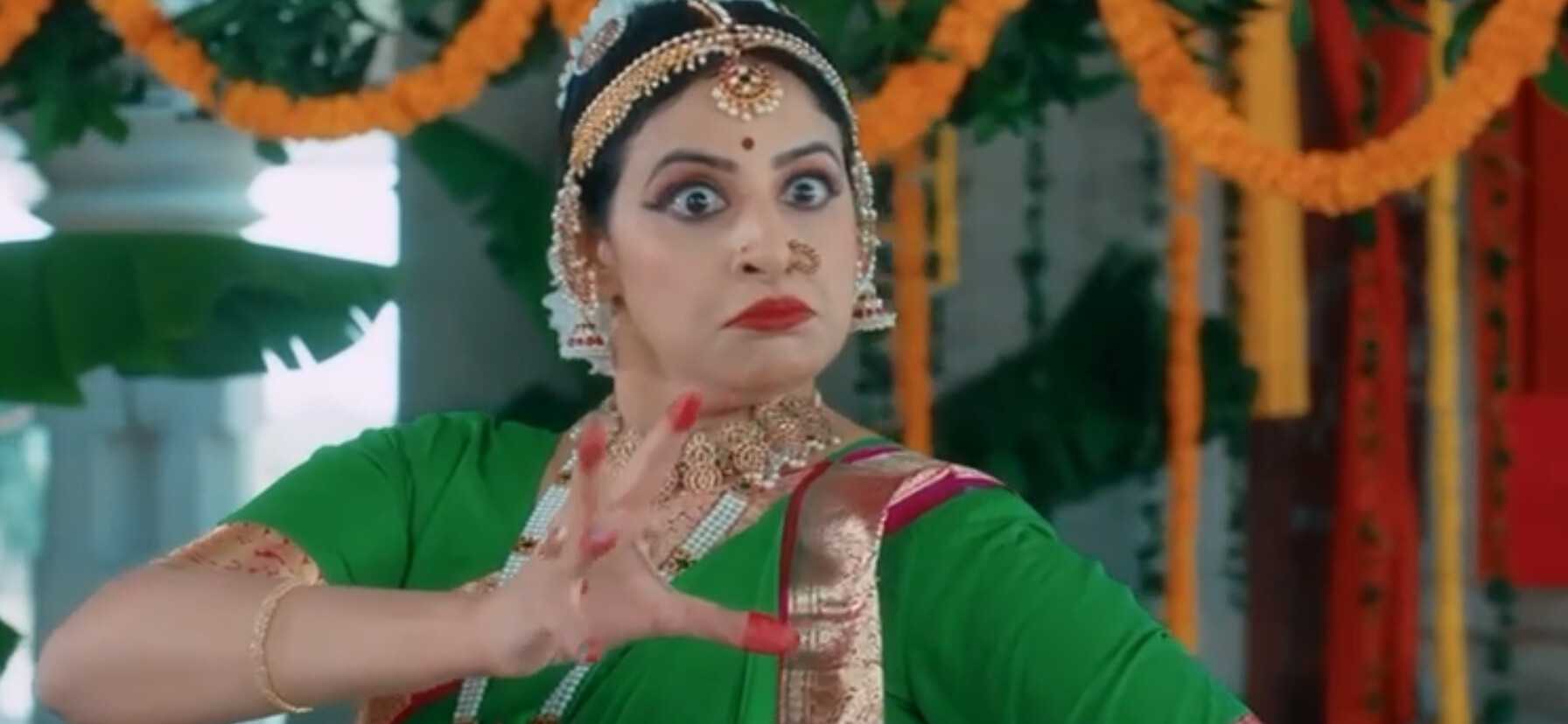 And this isn’t to abstain from mentioning that watching Davaluri guide us through the amazing and poignant dance elements she performs with such fluidity, meaning, and evident, spirited joy is nothing short of mesmerizing. For this critic, it honestly manifests that exact interest and fascination with the Bharatanatyam and other forms shown that Davaluri is wanting to create here. Kolluru very much makes his presence known on screen through his role as Pavani’s endearingly doting then coldly detached husband Ramesh, a man who seems like a Prince Charming but then definitively falters in maintaining such a demeanor. Supportive until he is not, Ramesh becomes a severe foil to all that his wife believed HE was about, devolving into a patriarchally-driven cad whom it doesn’t take much for the viewer to despise. Yet, this IS the magic of Kolluru’s acting here, creating a character we so love but then SO hate, and his navigation of both ends of the spectrum  is executed with precision, energy, and skill.
