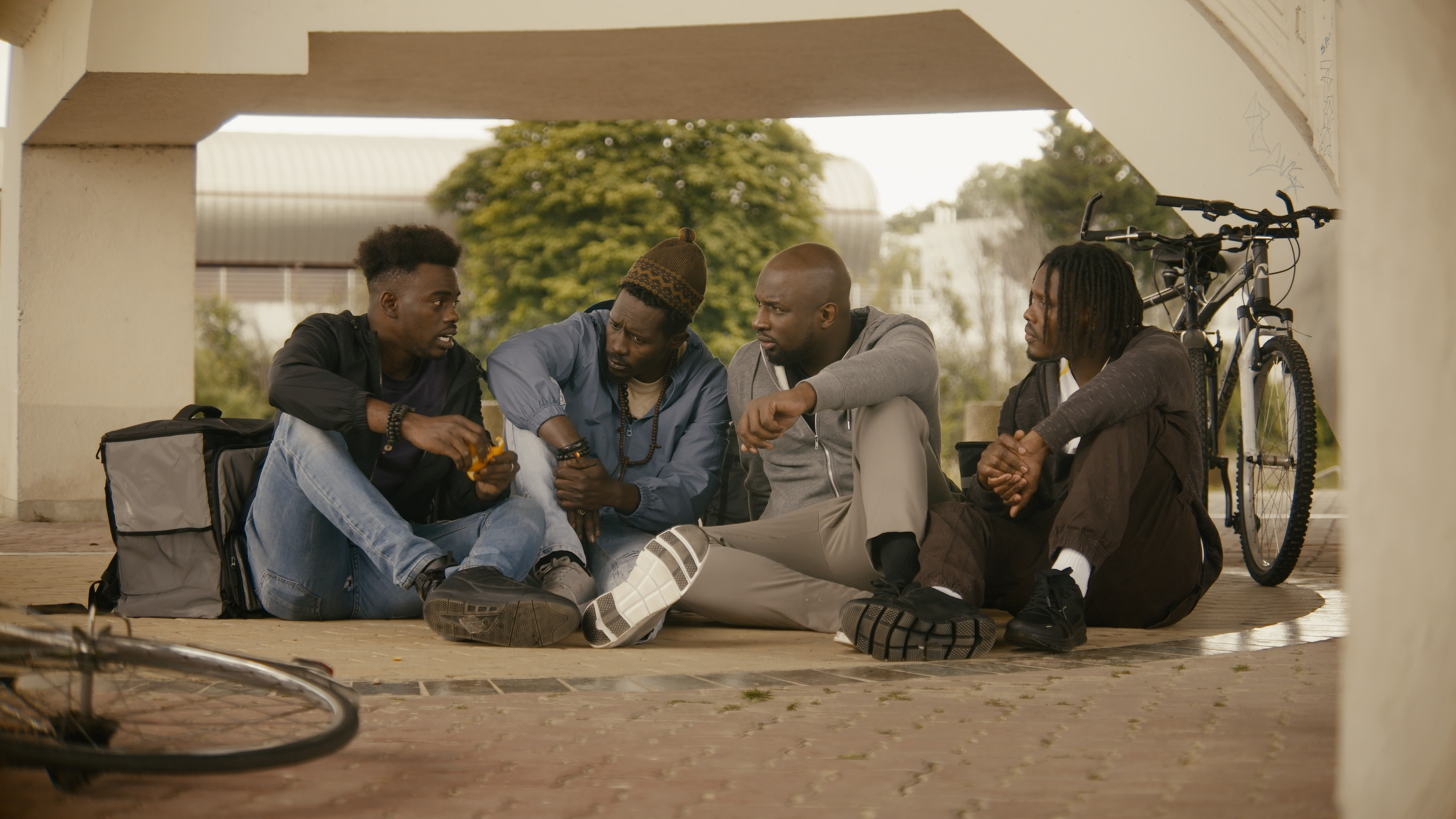 But, when a random delivery on his bicycle route brings Seydou in touch with an old recluse and the story that accompanies him, it opens up both men to new and much needed, renewed outlooks on their respective lives that will change them both. While these particular interactions don’t happen until a little later in the film as a whole, the timing is perfect for it to occur, and watching Diaw navigate Seydou’s character through the emotional storms he faces is a true pleasure thanks to the utter believability and total soul in the performance that WILL move you. Primary supporting turns start with Amadou Moussa Ba, Alassane Diaw, and Al Housseynou Diaw as Malik, Moussa, and Djibril, three of Seydou’s fellow Senegalese migrant friends who are ALL striving to stay connected for the deeply requisite companionship, support, and encouragement they all long for even as they equally yearn to go back home.