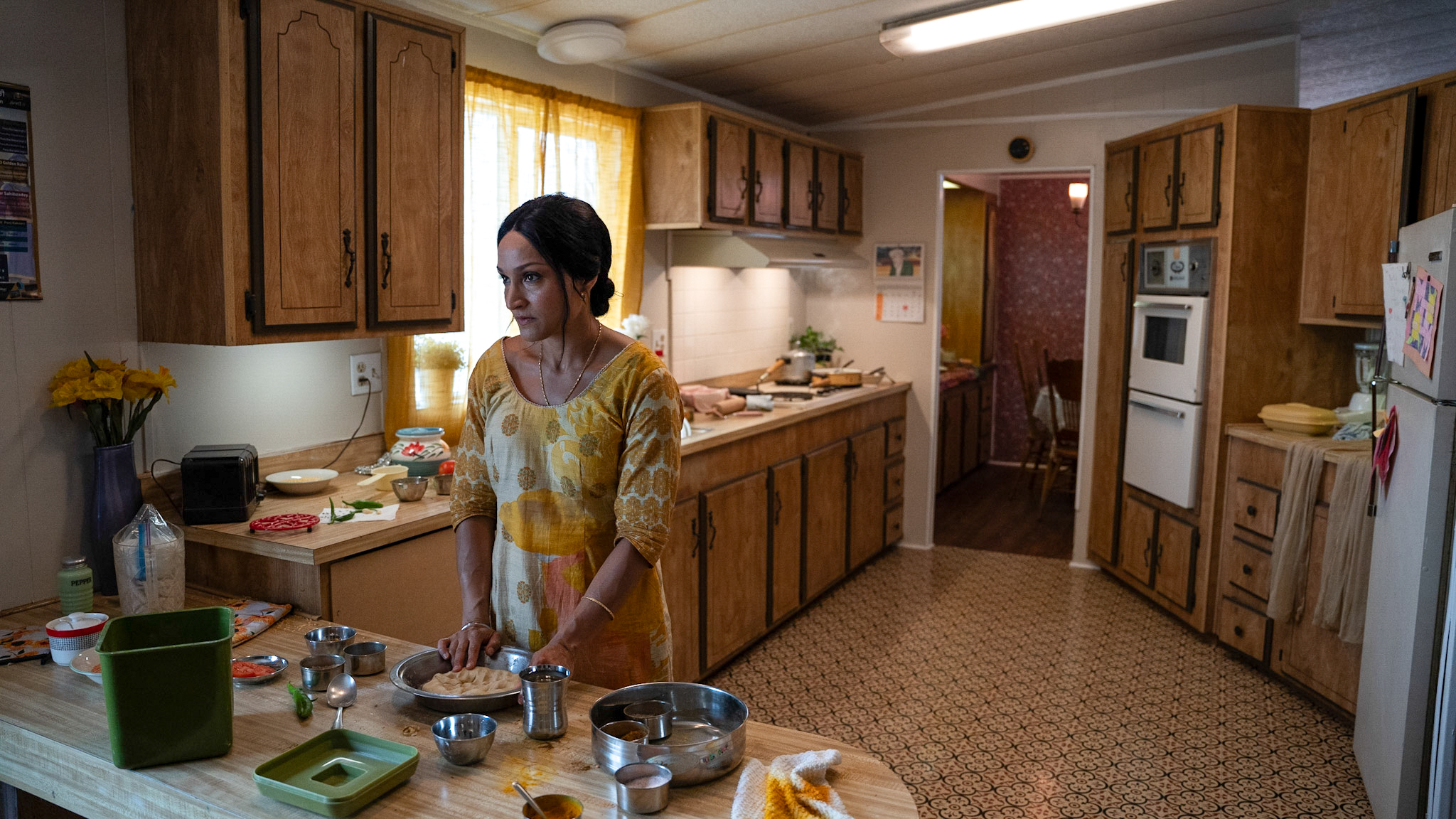Morrison is simply amazing here, exuding such a believable, fervent, dynamic, and heart-wrenching performance through her role as Mandeep, a wife and mother who becomes aware of the possible dangers being forecasted when political unrest back in India is causing a threat to manifest that could impact her husband’s upcoming travels back to India for a few weeks. Already feeling like she’s the only one doing anything in the home even as her agitation and concern over the growing sense of dread she has begins to boil over, will she successfully be able to convince Jeet to reconsider his plans, or feel the full brunt of his insistence that everything will work out fine and that her worry, in spite of all that says otherwise, is somehow unfounded? Throughout this entire unfolding of events, Morrison conveys this stormy and acutely mercurial state of being the character is experiencing with precision, poise, and intent that draws you into it all with definitive emotional investment.