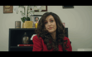 Tenaya Cleveland assuredly makes her presence felt with an intentionally, and quite hilariously, over-the-top performance as Janine’s boss, Dolly, who needless to say has her own….unique, conspicuously awkward, and totally ignorant….way to address the behavior Janine has hung onto for far too long, at least in Dolly’s crazily uninformed opinion. It’s a masterclass in comedic timing and delivery, with Cleveland milking every moment with what this critic felt was a delicious glee. Plus her final moment on screen at the end of the film is rather nuts as well! Primary supporting turns are made by Melanie Miranda as the unfortunate server who waits on Janine’s dysfunctional table during what is supposed to be a celebratory birthday dinner, and Aleesha Flow (via voice only) as the Smart Speaker device at Janine’s apartment that brings forth mostly unwanted, but then one HUGELY cathartic, recorded messages.
