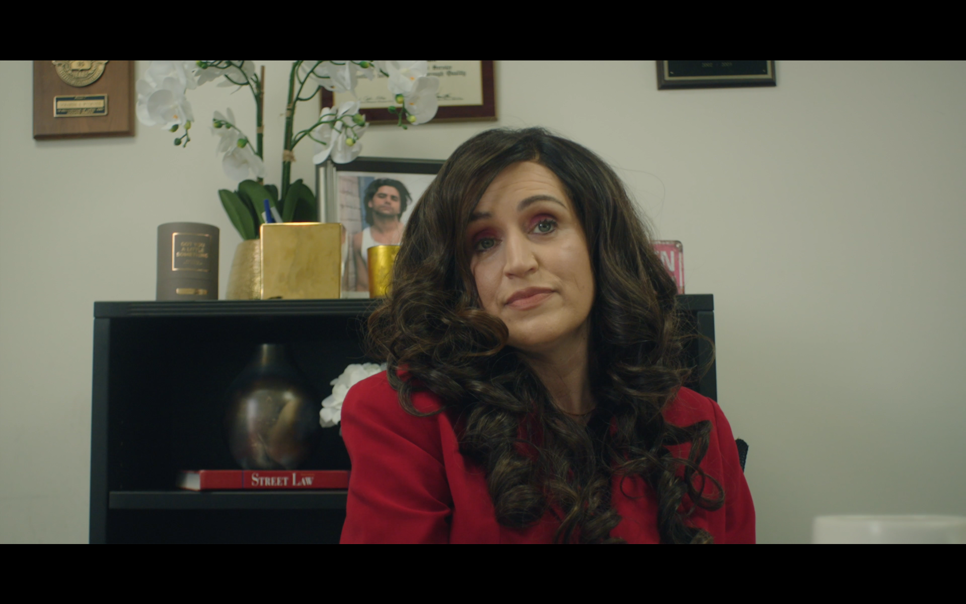 What makes this film work in having us encounter all of this emotively-charged and viscerally impactful thematic core is the means by which Fitzgerald has both exaggerated certain elements of the narrative and its content FOR more (again, darkly) witty instances while still maintaining the overall more serious dramatic facets and messaging the film carries. Again, I found it a stroke of genius as to this style of writing and direction for the story, with the aforementioned willingness to go far beyond “standard” fare and choosing instead to be original and fresh while doing full justice to the themes being explored. Visually, the film also utilizes one of the most clever devices to showcase the entire concept of someone crumbling, yet also being on the verge of exploding, under the weight of a longstanding period of constantly developing, expanding, burning emotional upheaval, that I’ve personally witnessed. And IT WORKS superbly well. Watch and see.