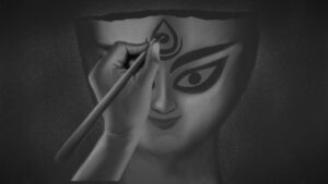 Unlike so many of the films this critic reviews, here we have an effort that doesn’t employ any actors to bring its narrative and themes to life. It is truly a visual and music-driven experience, which for me is a excellent example of what independent cinema does so adeptly and with a deeply impassioned soul that can SPEAK volumes without a single word BEING said and the animation so deftly portraying the requisite narrative renderings. Now, the film does also rely on traditional Goddess Durga mantra chanting and drums as provided by Sanchayan Chakraborty and Amal Datta respectively, in addition to composer Sudeip Ghosh’s score, which in tandem efficiently and effectively lend themselves to the proceedings with emotive and haunting, eerie urgency. As viewers, we need to realize that one of the biggest takeaways from the tense and unsettling journey this film takes us on is the straightforward fact that we have desire to see evil destroyed, claim to honor this, yet our Durgas get claimed by it. It’s a paradox that must be seen, and change initiated. NOW. Let our Durgas BE Durgas, and may we have the passion to truly see evil dispelled.